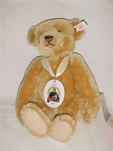 670190 White Tag 1997 08964 Porcelain Tag 1997, Teddy Bar 28 Certificate around Neck ,Yellow 11 1/2 in.