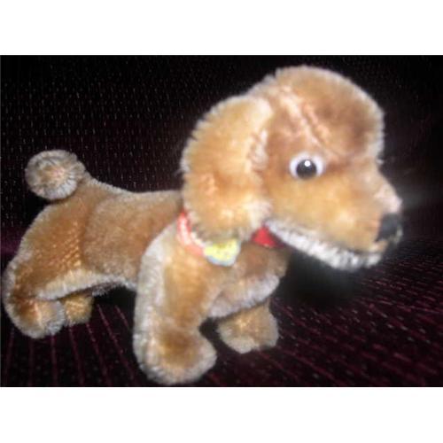 This is not something I usually have so I'll do the best to describe as I can. This is a dog that is 3 3/4" tall from his head to his feet. He is approximately 5 3/4" long from tip of nose to back leg. He has a little red collar and attached is a Steiff paper tag that reads Hexie Steiff Original Marke. He is not dirty nor does he have any holes or smells. He is from a smoke free environment. I will leave it up to the buyer to guess the production time. My guess would be no later than the 1960's but that's only a guess on my part as I said, this is not my usual item.