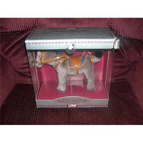 This is not something I usually have so I'll do the best to describe as I can. This is a donkey made by Steiff. He's still in his original box so