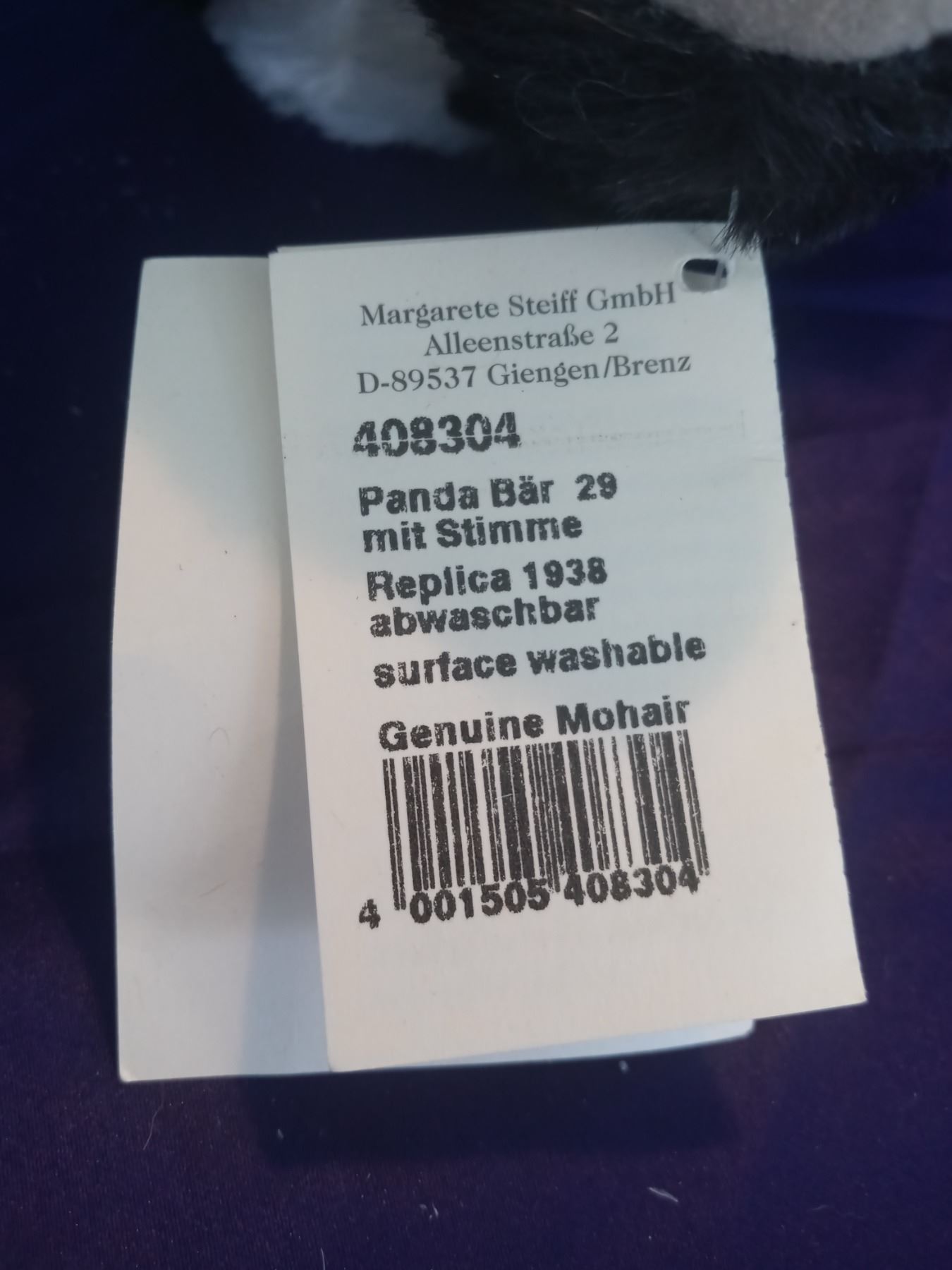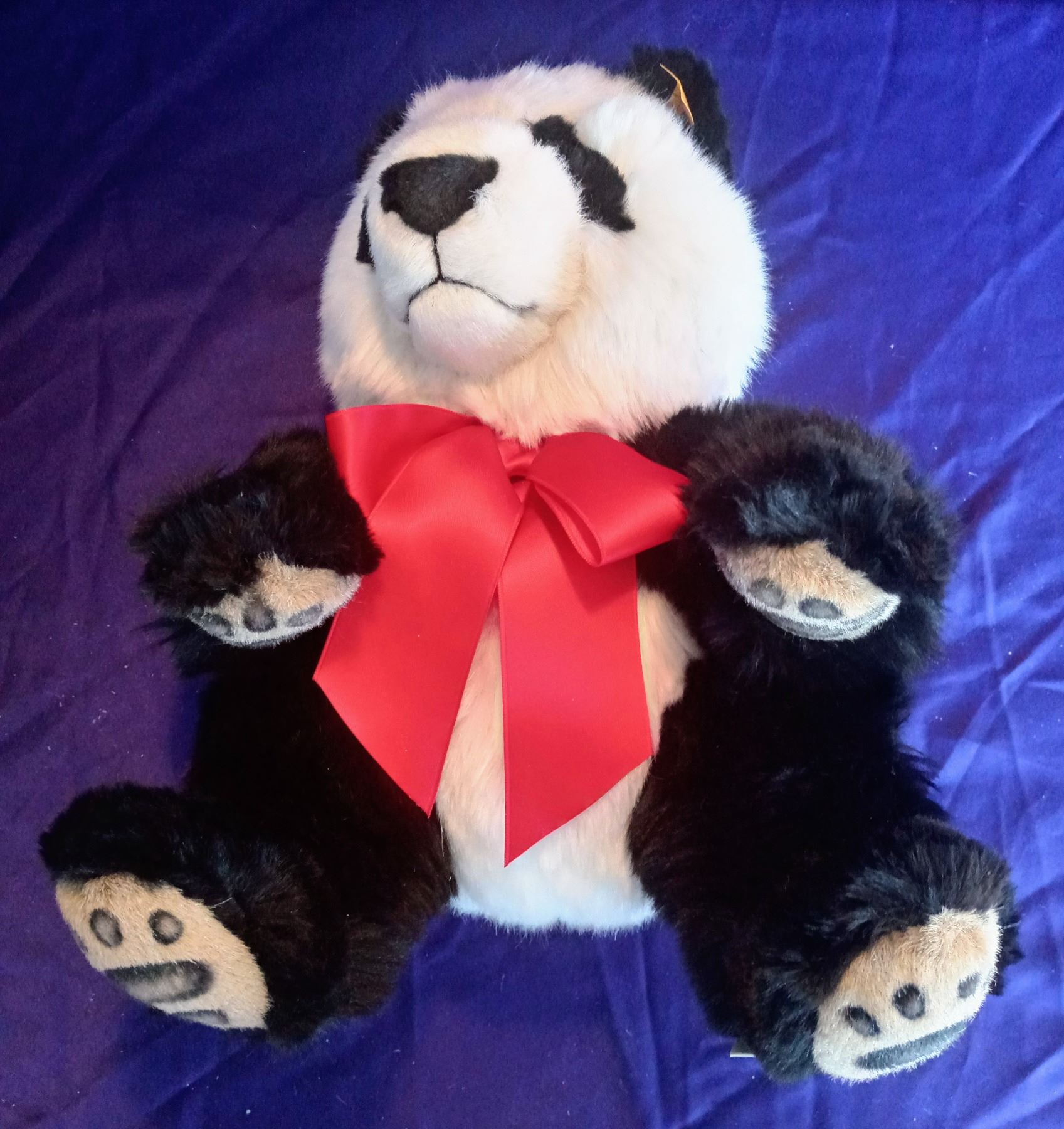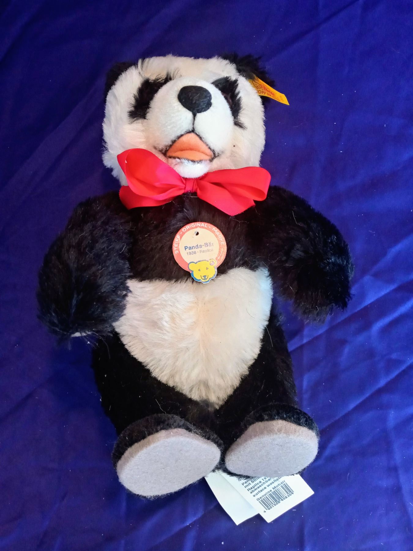 2 Steiff Panda Bears, includes a Jointed replica 1938 panda bear and a Ling Ling Panda bear. In good condition.