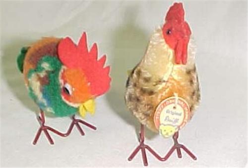 Steiff1310,04 4 in. Tall Standing Hen Value $95.-$125. & an unmarked Hen