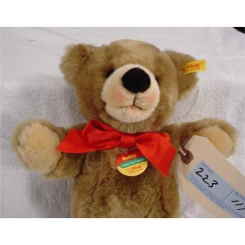 Steiff teddy bear named "Bobby" # 24. In wonderful condition. Measures 10 inches long and weighs 5 ounces. [117]