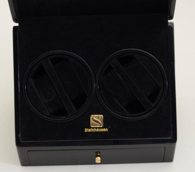 Steinhausen perpetual winding machine for automatic wristwatch collectors; original cost: over $1,000 from this famous company. The ultimate gift for the Patek or classic mechanical watch collector (this means youJerry). From the estate of Robert Petersen. Est.: $200-$400.