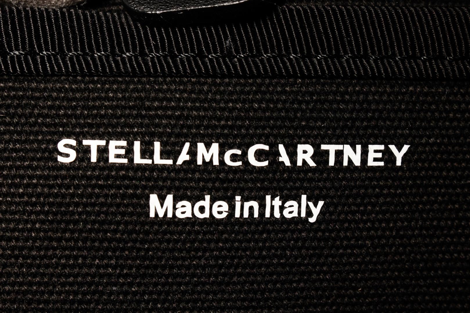One Stella McCartney Black Canvas Net Alter Tote Bag. Item is sold AS-IS. All available information is listed in the description and shown in the photo. Black canvas with netting accent Stella McCartney Alter tote bag with silver-tone hardware, dual flat handles, a detachable black leather shoulder strap, an open top and an internal pocket with white printed logo accent. Height: 12.25" Width: 15.25" Depth: 5.75" Shoulder Strap Drop: 7.75"