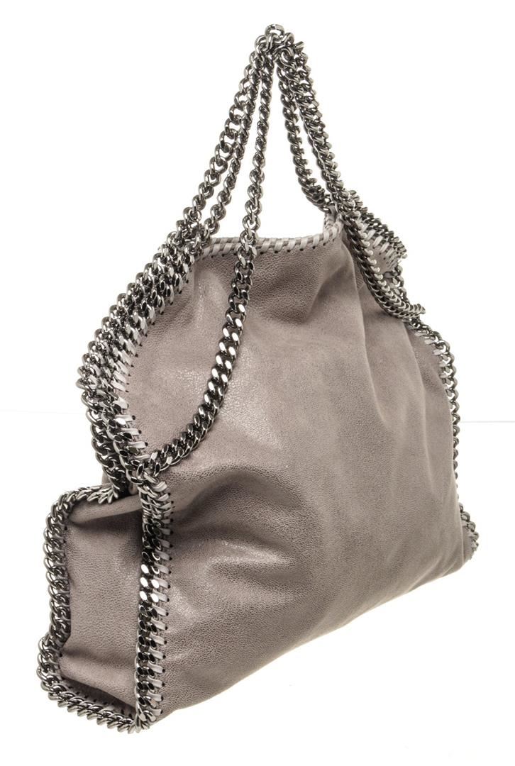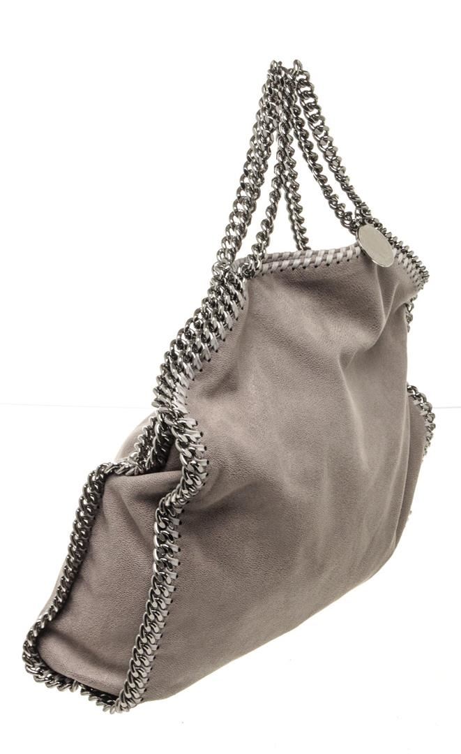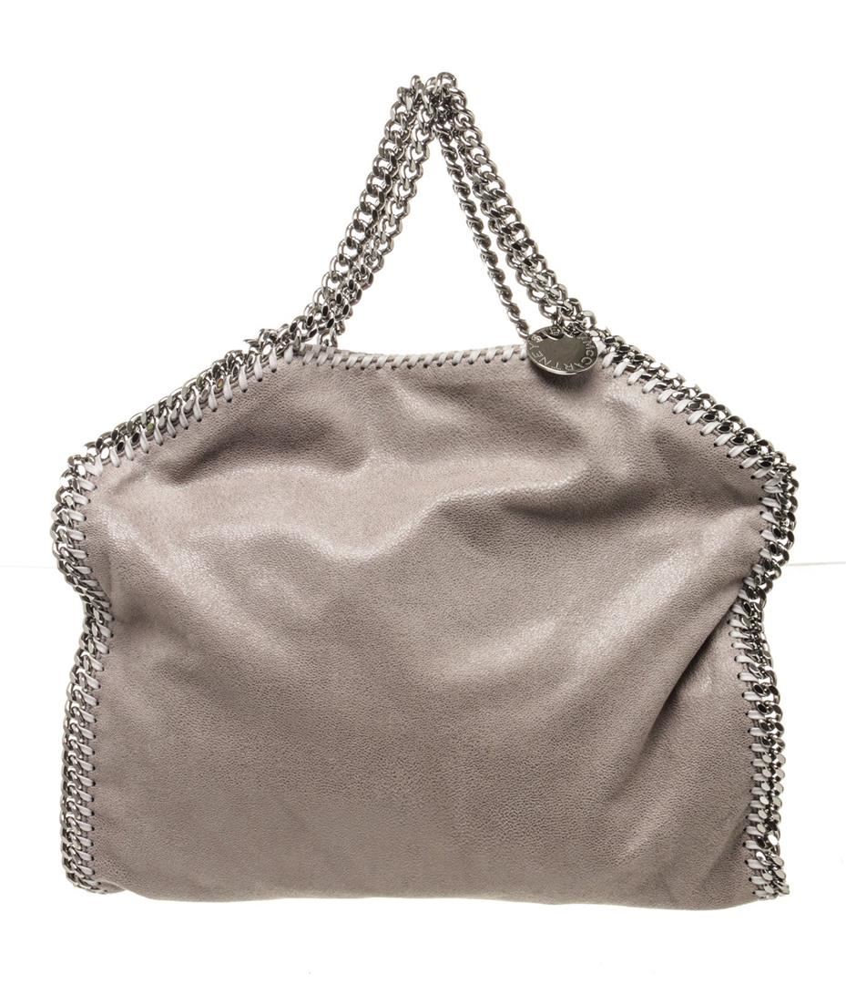Stella McCartney Brown Leather Fallabe Crossbody Bag with leather, gold-tone hardware, trim leather, chain shoulder strap and drawstring closure.