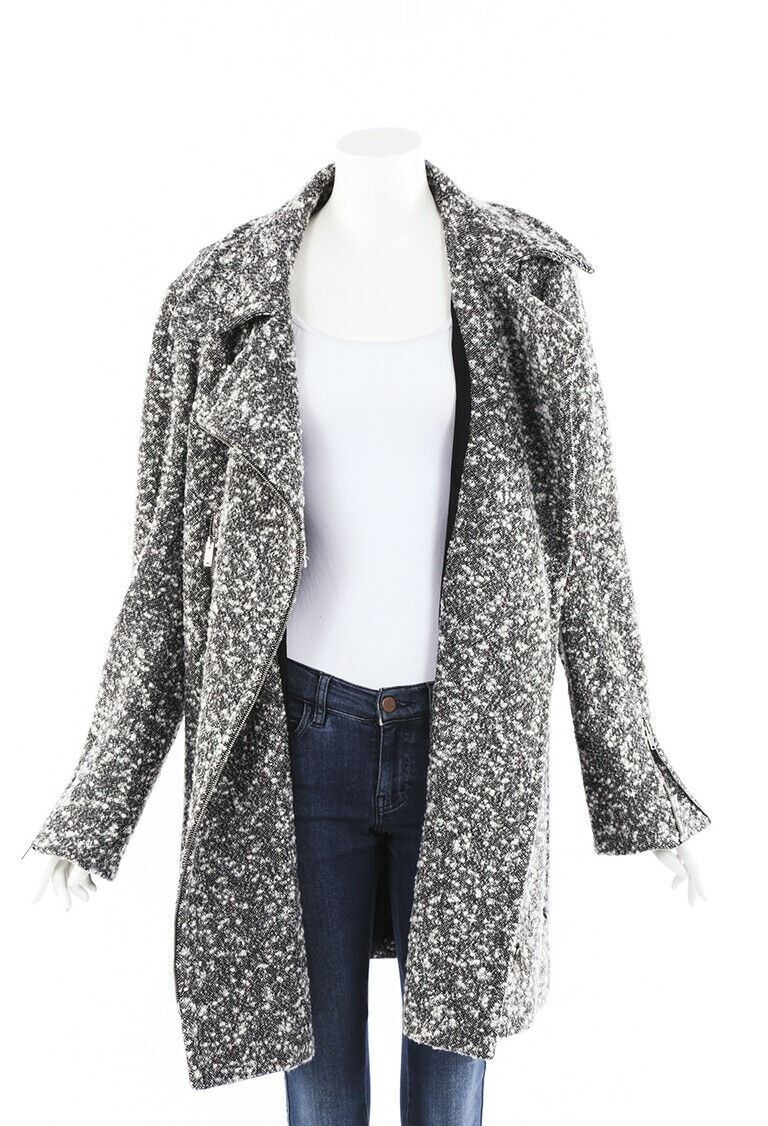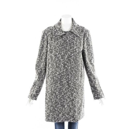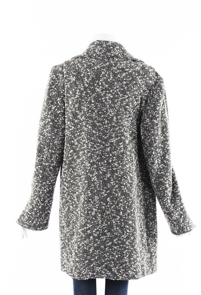 Stella McCartney boucle wool blend coat features a spread collar, zipped cuffs, pockets, and a front zip closure. Lined.