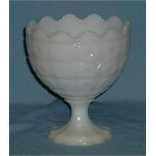 Stemmed Comport by Napco. This piece is patterned with stars and dots. I'm not sure what the pattern is called. The edges are scalloped. There are no chips, cracks, or crazing.