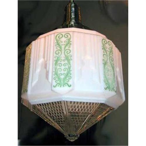 </font></strong>Stencil Milk Glass Chandelier. Double Holophane bottom. Restored to original splendor. Three available make this a very rare find. $1320 each.</font>