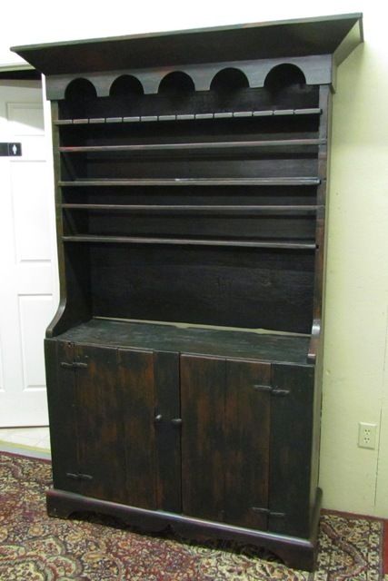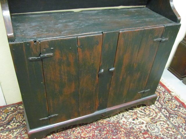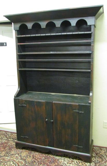 Late 1700 to early 1800 one piece step back Pewter Cupboard in original condition with cornice front with spoon rack with 3 shelf over 2 solid doors - 81" x 45" x 16"