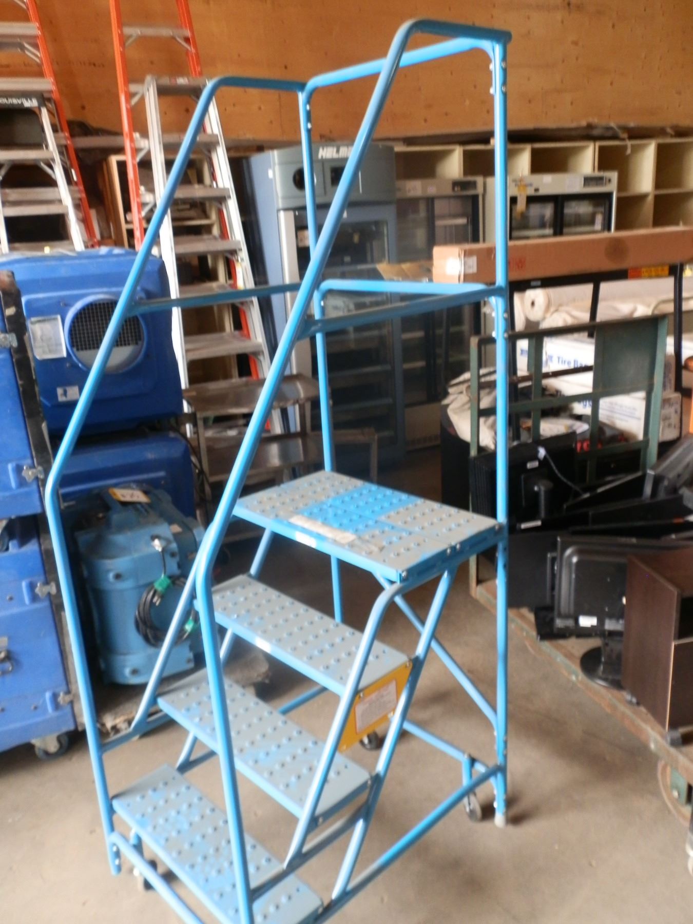 4 Step Ladder on wheels like New condition...some damage as seen in the photos...Freight Claim.....