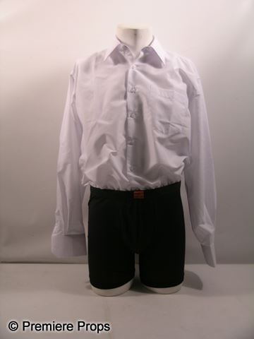 Jason (Stephen "Twitch" Boss) screen worn, black 'Giorgio Fiorelli' two button two piece suit, (size 42/36) and white long sleeve button front with attached shorts 'Berlioni' dress shirt. (size L)