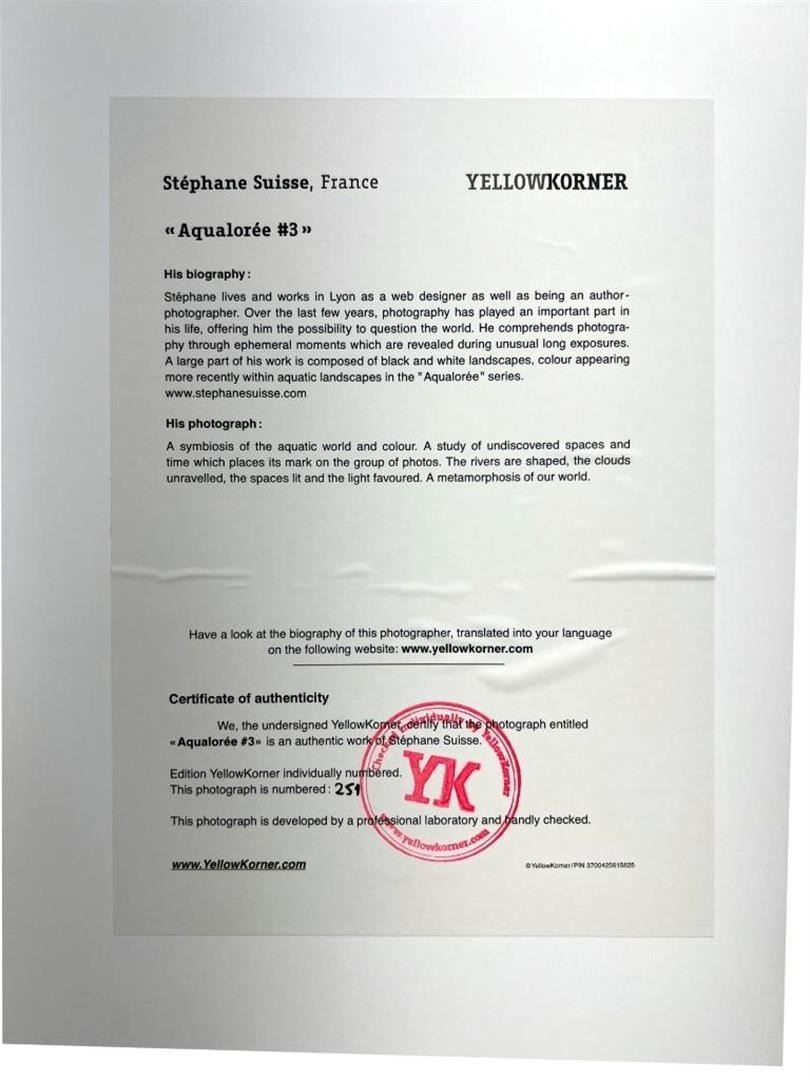 Stephane Suisse France Aqualoree #3 YellowKorner Certified Photograph. Certificate of Authenticity from YellowKorner affixed to the back. Matted Dimensions 16"x20". Protected with Clear Mylar Sleeve.