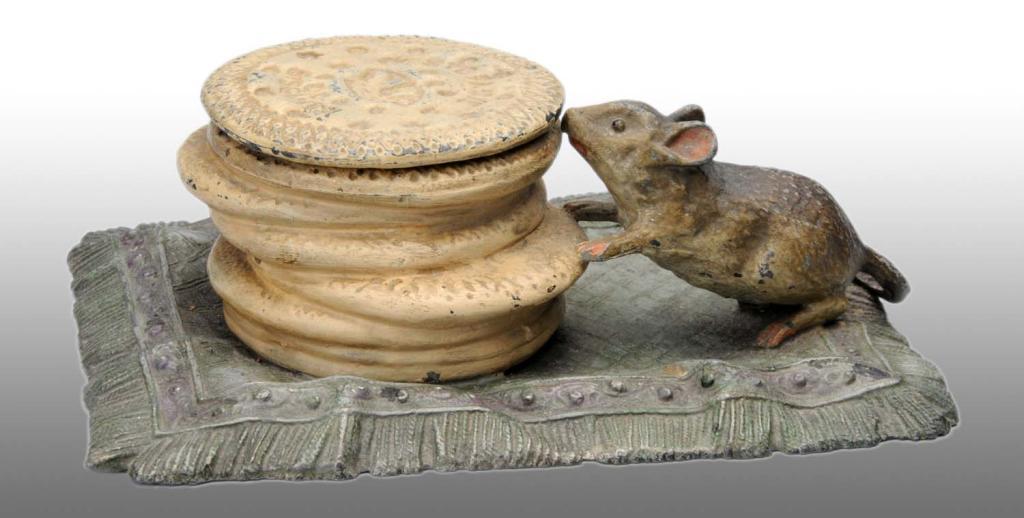 Description Lead metal. Insert present. No damage. Features a mouse eating Stephanie Biscuits. Condition (Excellent). Size 5" x 2".