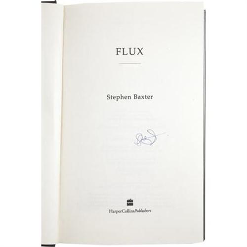 <B>Stephen Baxter Signed: </B></I><B><I>Flux.</B></I></B></I> (London: Harper Collins, 1993), first edition, 366 pages, black boards, 8vo, dust jacket. Condition (book/ dj): fine/ fine.<BR><BR><b>Shipping:</b> Books & Catalogs (<a target="_blank" href="http://www.heritageauctions.com/common/shipping.php">view shipping information</a>)
