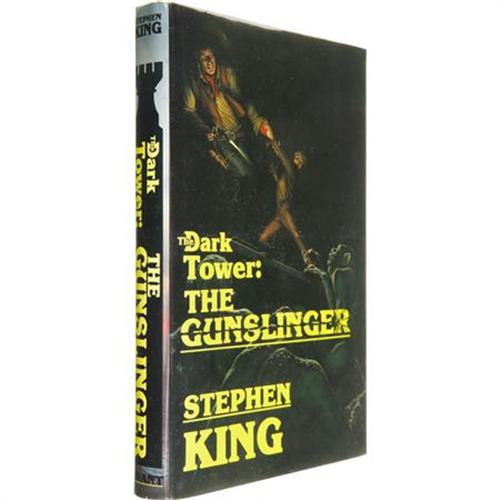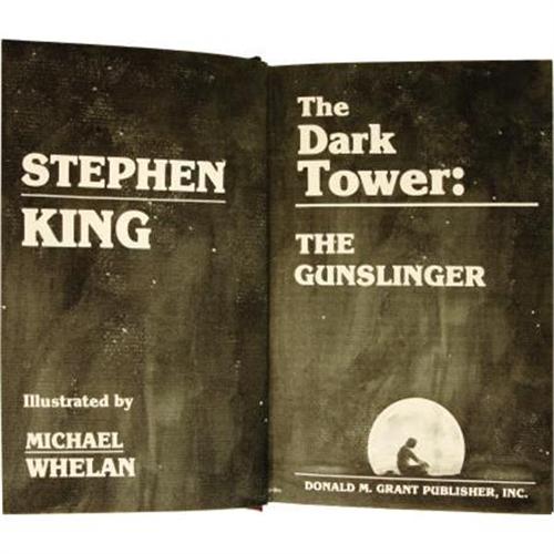 <B>Stephen King: First Trade Edition of <I>The Gunslinger</B></I></B></I> (West Kingston, Rhode Island: Donald M. Grant Publisher, Inc., 1982), first trade edition, 224 pages, brown cloth with gilt spine titles, 8vo (6.25" x 9.25"), dust jacket. King's epic post-apocalyptic <I>Dark Tower</B></I> series first saw publication in book form with this very volume. Originally serialized in <I>The Magazine of Fantasy and Science Fiction</B></I> between 1978 and 1981, <I>The Dark Tower</B></I> series has become a touchstone for readers of dark fantasy, and has drawn comparisons to <I>The Lord of the Rings</B></I> for its epic sweep and breadth of character and story. The book presented here is in fine condition in a near fine unclipped dust jacket. Minimal wear at the corners and spine ends are the only points keeping the dust jacket from fine. A beautiful copy of a Stephen King masterpiece.<BR><BR><b>Shipping:</b> Books & Catalogs (<a target="_blank" href="http://www.heritageauctions.com/common/shipping.php">view shipping information</a>)