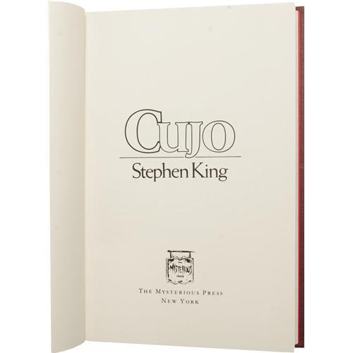 <B>Stephen King: Signed First Edition of <I>Cujo</B></I>.</B></I> (New York: Mysterious Press, 1981), special limited first edition (#139 of 750 signed by King), 319 pages, bound in burgundy cloth with gilt on front, back, and spine, 8vo (6.25" x 9.5"), no dust jacket as issued, burgundy slipcase. <B>Condition</B></I>: As new. <I>From the Ventura Collection.</B></I><BR><BR><b>Shipping:</b> Books & Catalogs (<a target="_blank" href="http://www.heritageauctions.com/common/shipping.php">view shipping information</a>)
