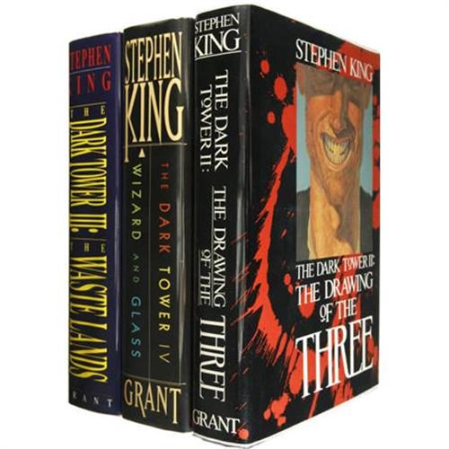 <B>Stephen King: Three First Editions.</B></I> Includes the following:<BR><B><I>The Dark Tower II: The Drawing of the Three.</B></I></B></I> (West Kingston, RI: Donald M. Grant, 1987), first edition, 399 pages, black boards, 8vo, dust jacket. Condition (book/ dj): fine/ fine.<BR><B><I>The Dark Tower III: The Waste Lands.</B></I></B></I> (Hampton Falls, NH: Donald M. Grant, 1991), first edition, 512 pages, red boards, 8vo, dust jacket. Condition (book/ dj): fine/ fine.<BR><B><I>Wizard Glass.</B></I></B></I> (Hampton Falls, NH: Donald M. Grant, 1997), first edition, 787 pages, black boards, 8vo, dust jacket. Condition (book/ dj): fine/ fine.<BR><BR><b>Shipping:</b> Books & Catalogs (<a target="_blank" href="http://www.heritageauctions.com/common/shipping.php">view shipping information</a>)
