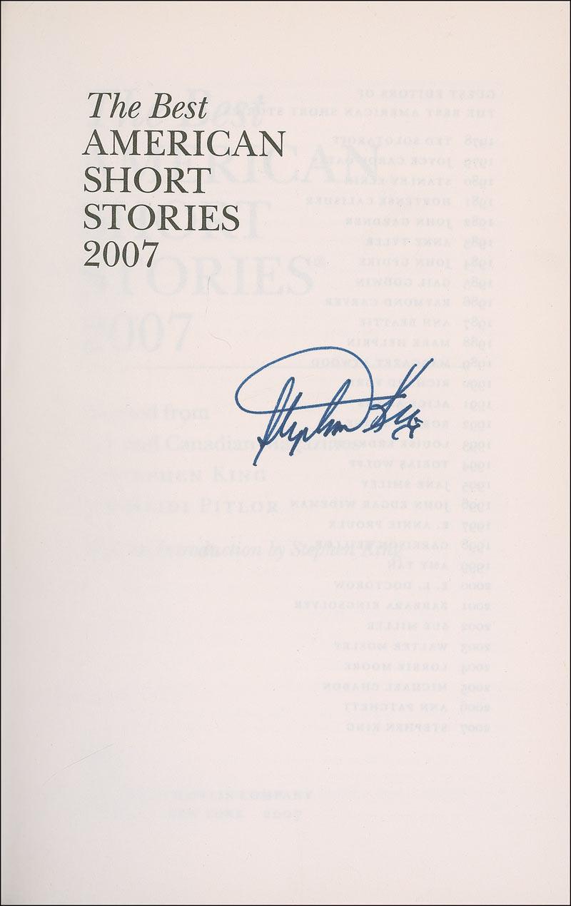 Two books: softcover edition of The Best American Short Stories, signed on the half-title page in felt tip by Stephen King; and a hardcover edition of From the Corner of His Eye, signed on the half-title in felt tip by Dean Koontz. In fine overall condition.