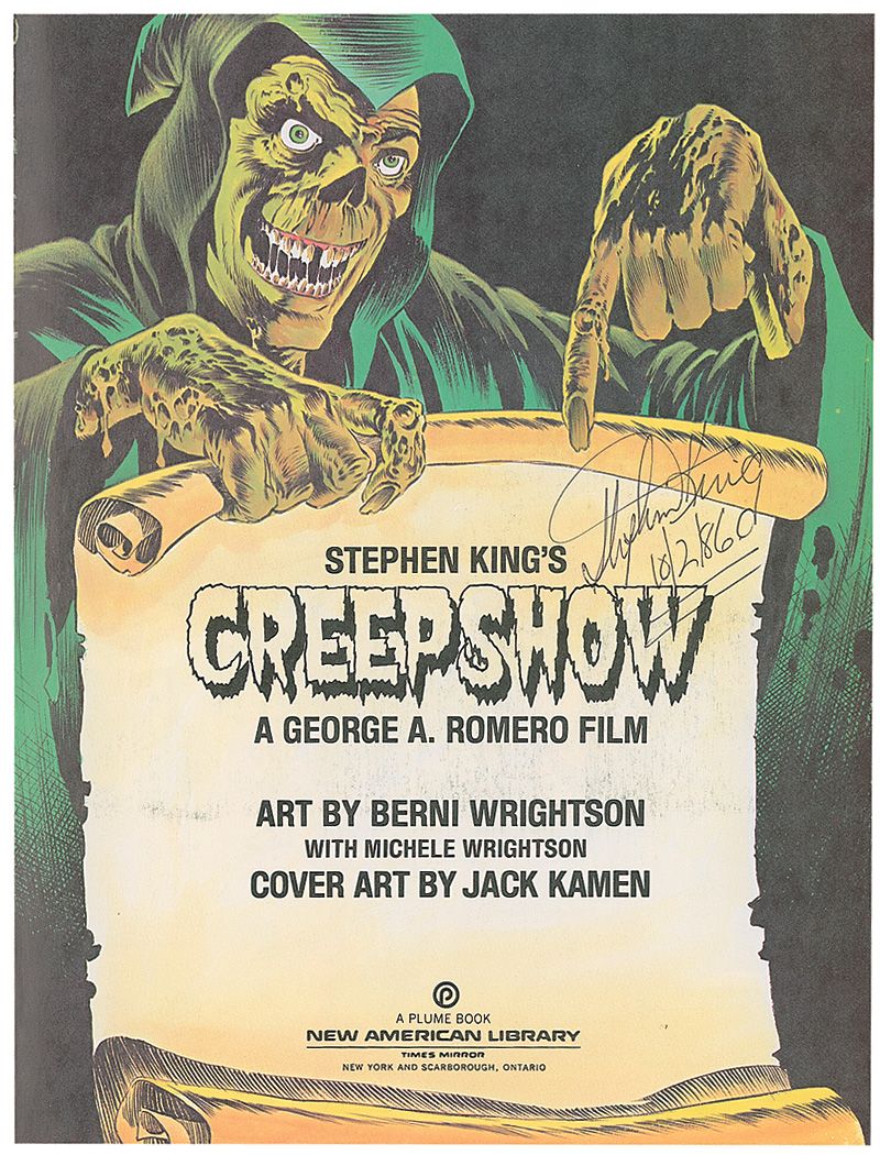 Creepshow graphic novel from 1982, 8.25 x 11, signed on the title page in black ballpoint, “Stephen King 10/2/86.” In fine condition, with some mild handling wear.