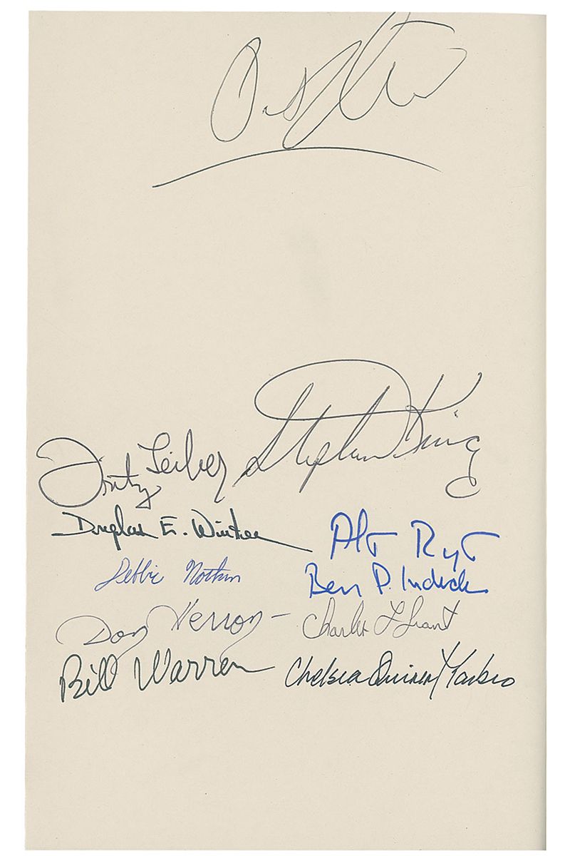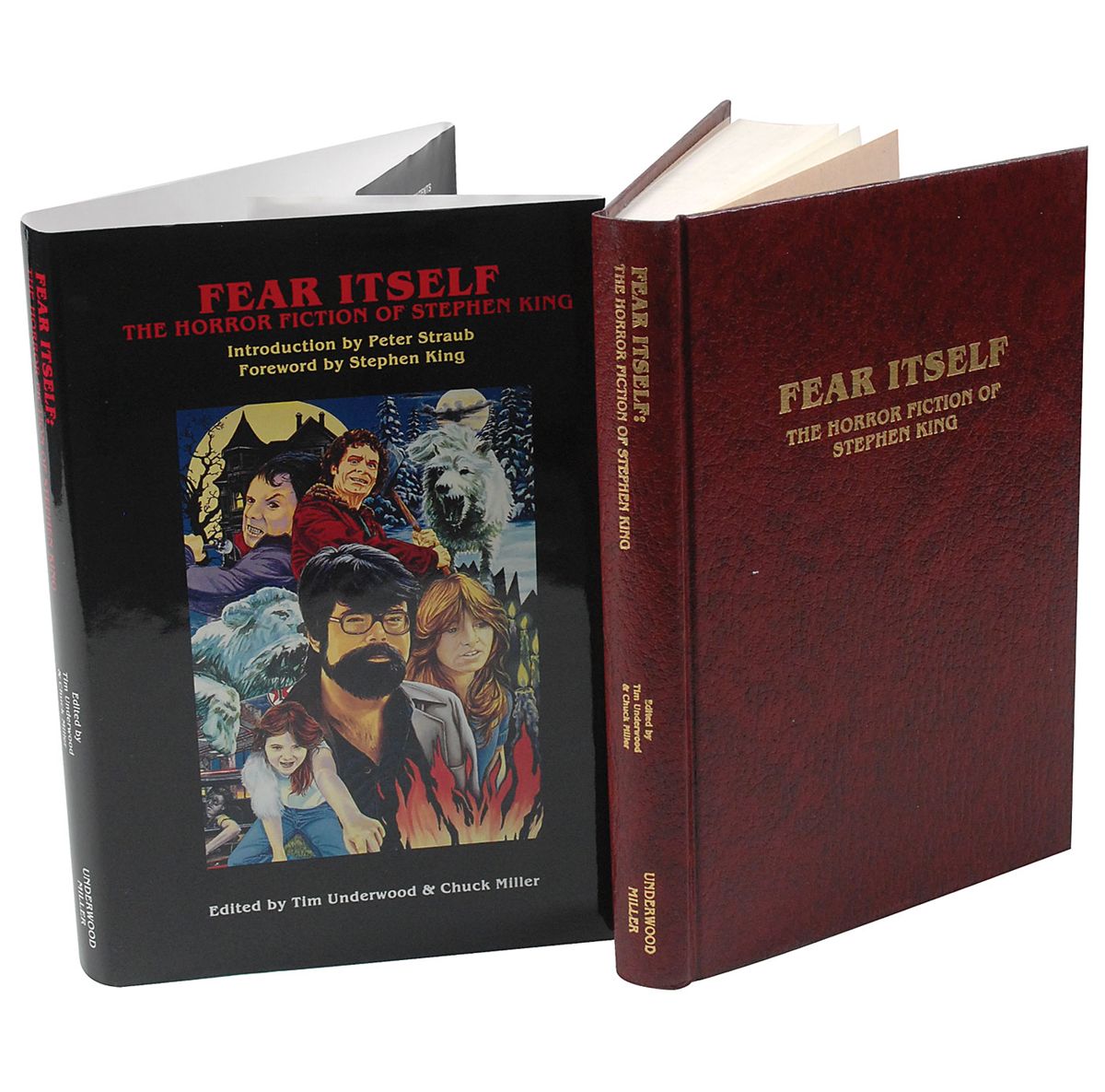 Signed book: Fear Itself: The Horror Fiction of Stephen King. First edition. San Francisco: Underwood-Miller, 1982. Hardcover with dust jacket, 6.25 x 9.5, 255 pages. Signed on the reverse of the second free end page by King as well as by 10 other authors and critics. In fine condition.