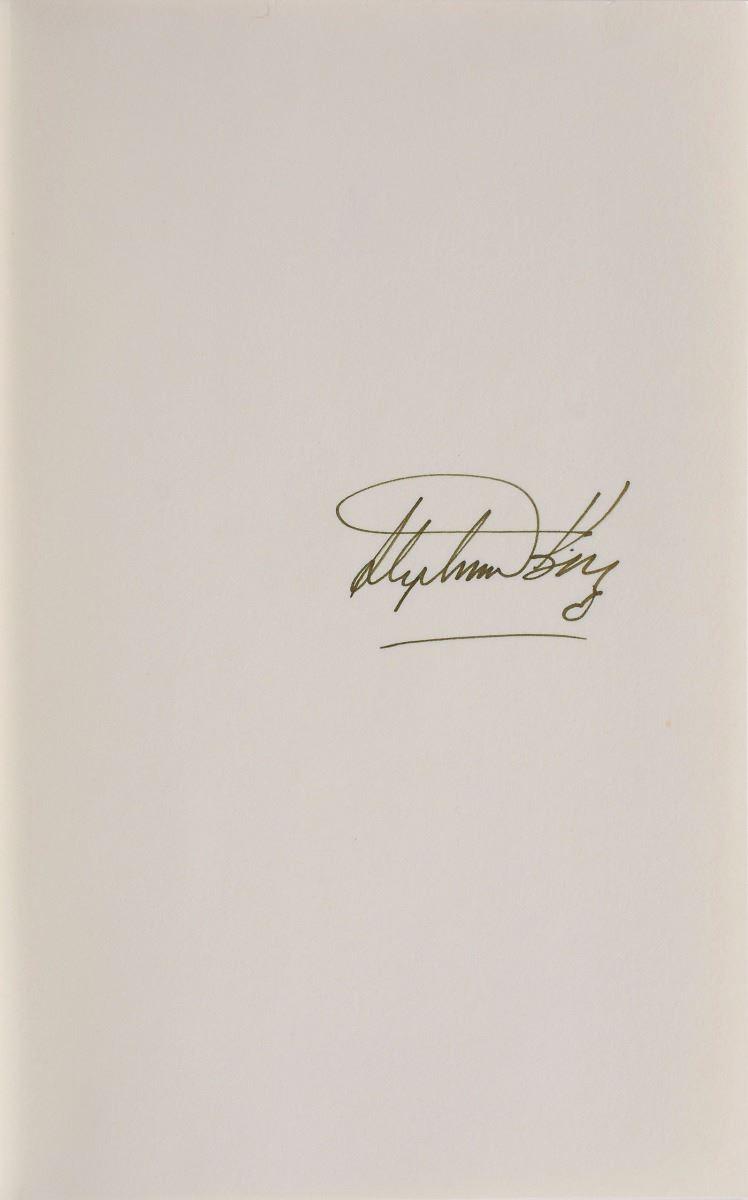Signed book: On Writing: A Memoir of the Craft. First edition. NY: Scribner, 2000. Hardcover with dust jacket, 5.75 x 8.75, 288 pages. Signed on the first free end page in black ink. In fine condition. Accompanied by a newspaper clipping and collector’s notation indicating that the signature was obtained at a book signing in downtown Bangor on October 25, 2000.