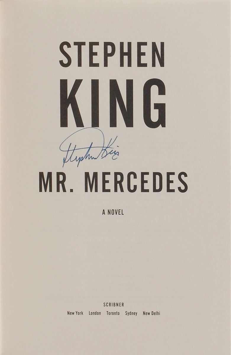 Uncommon signed book: Mr. Mercedes. First edition. NY: Scribner, 2014. Hardcover with dust jacket, 6.5 x 9.5, 437 pages. Signed on the title page in black ink. In fine condition. A highly desirable signed book given that there was no official book signing for this title.