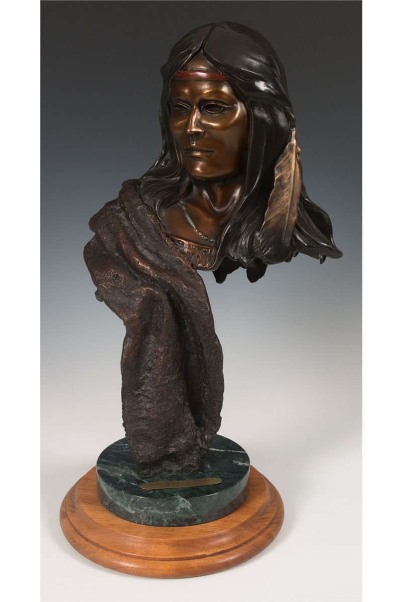 Stephen C. LeBlanc (20th/21st centuries). Bust of Indian Maiden. 16.5" x 10" x 6" bronze. Inscribed: LeBlanc 18/20. Provenance: Estate of Ken Holm, Denver, CO.