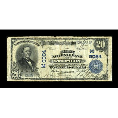 <B>Stephen, MN</B></I> - $20 1902 Plain Back Fr. 652 <B>The First NB</B></I> Ch. # (M)9064<BR> This issuer is popular among collectors, specifically those looking for namesakes. The signatures on this issue are bold and the paper is original and problem free save for some minor pinholes. Only five notes from this bank have appeared at auction with the last appearance in 2005. <B>Very Good-Fine.</B></I><BR><BR><b>Shipping:</b> Coins & Currency (<a target="_blank" href="http://www.heritageauctions.com/common/shipping.php">view shipping information</a>)