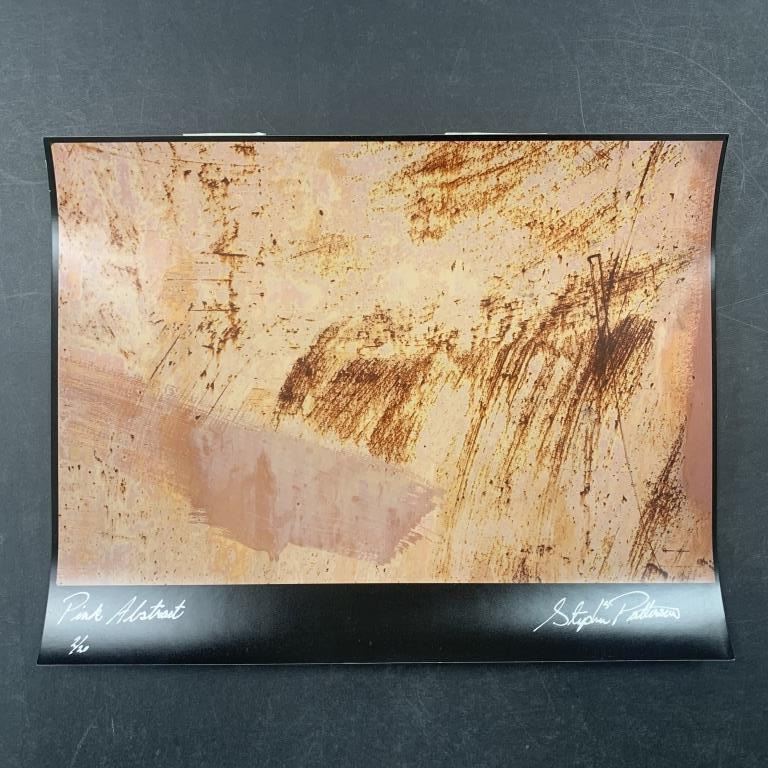 Stephen Patterson's "Pink Abstract" limited edition print, signed lower right and numbered 2/20 lower left. This piece is of a close up photograph of pink paint fragments on a wall, and is in excellent condition.