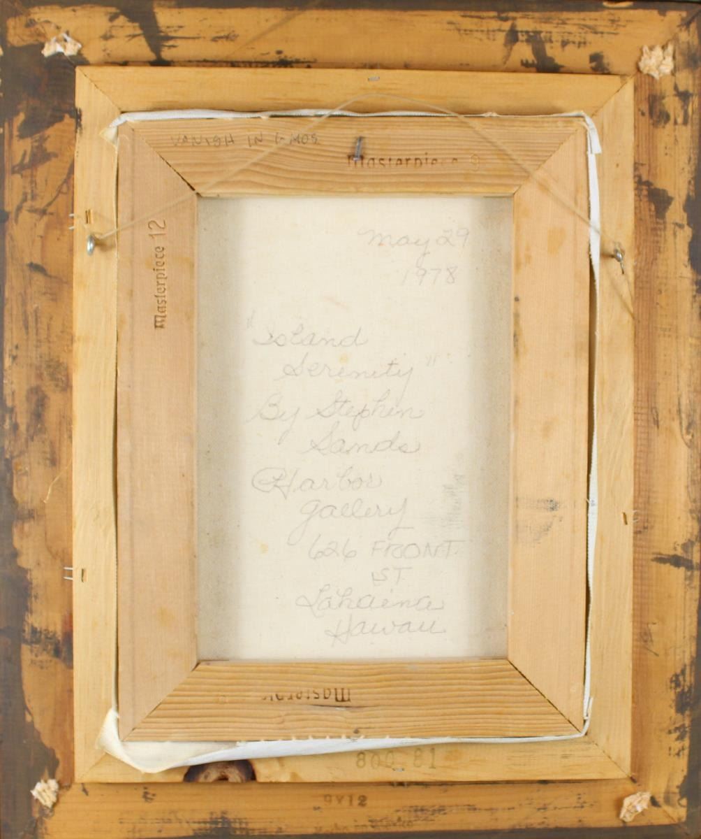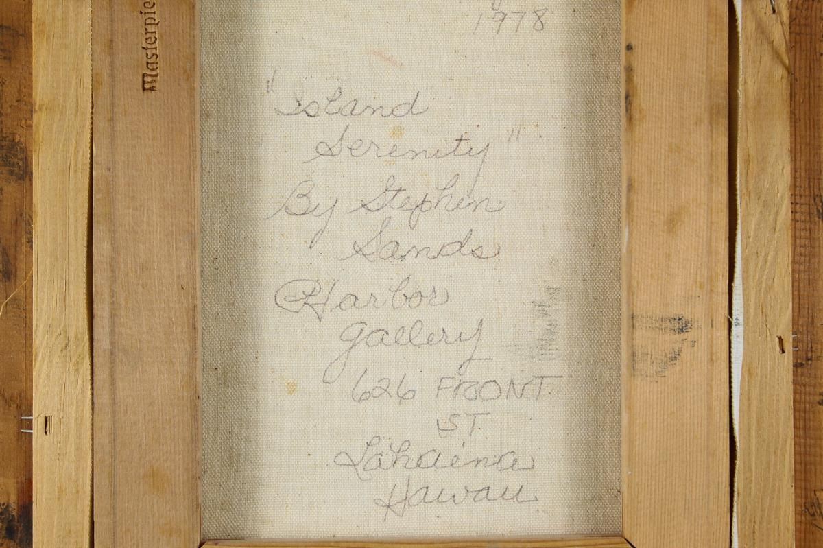 1978 Lahania Hawaii - by Stephen Sands. Titled "Island Serenity". Titled and inscribed on back.