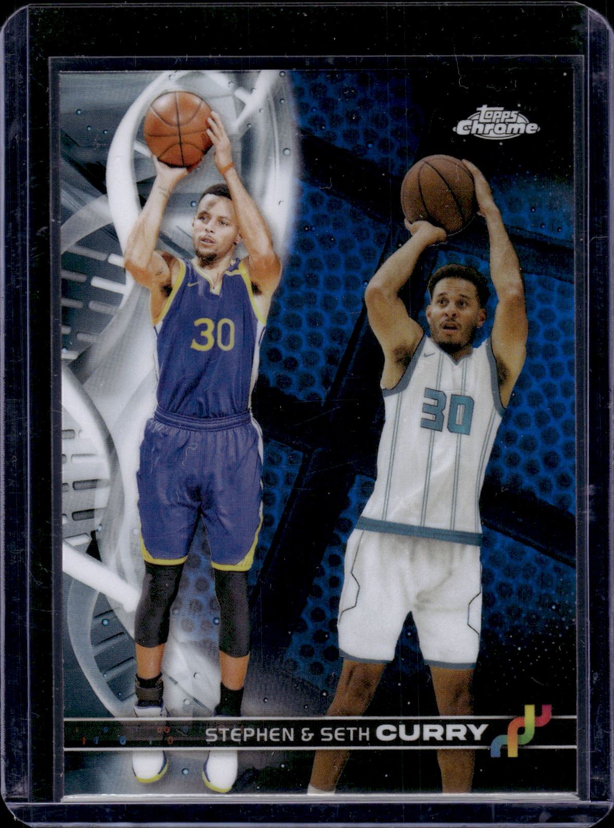 Stephen & Seth Curry DNA Blue Refractor 2023-24 Topps Chrome #DNA-1