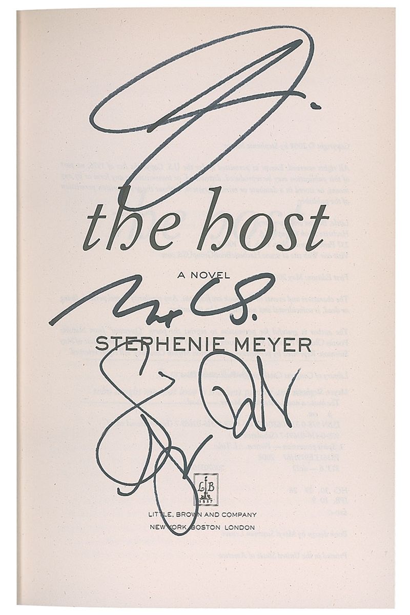 Signed book: The Host. First edition, later printing. NY: Little Brown and Company, 2008. Hardcover with dust jacket, 6.25 x 9.5, 619 pages. Signed on the title page in black felt tip. In fine condition.