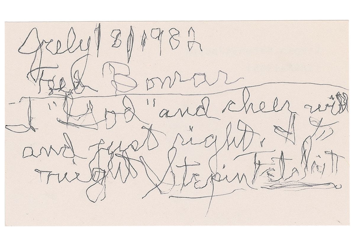 Ballpoint signature and inscription in Fetchit’s aged hand, “July 18, 1982, Fred Bomar, I ‘God’ and cheer will and just right. It’s right, Stepin Fetchit,” on a white 5 x 3 card. In fine condition.