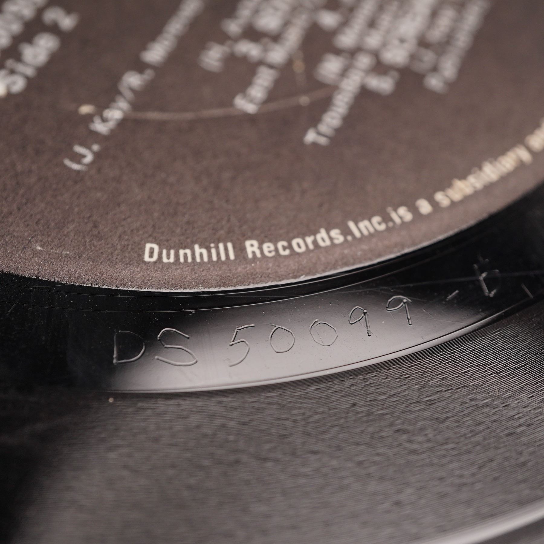 Original 1971 pressing of Steppenwolf Gold, Their Great Hits, catalog number DS 50099, released by Dunhill Records. This 12-inch vinyl LP features the iconic compilation of Steppenwolf's biggest tracks including "Born to Be Wild," "Magic Carpet Ride," "The Pusher," and "Sookie Sookie." Housed in the original gatefold cover with striking Egyptian-themed artwork and a vibrant silhouette band photo on the reverse. Vinyl matrix runout hand-etched with "DS 50099-B," confirming authenticity. Measures 12.5"L x 12.5"H.