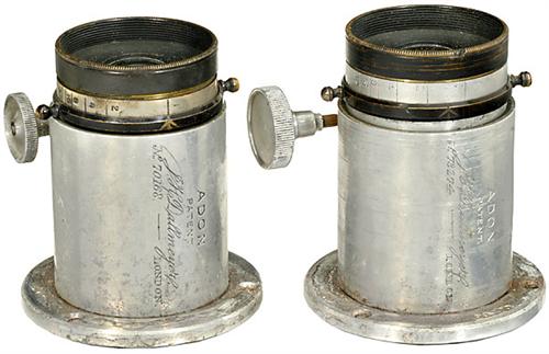 Stereo Lens "Dallmeyer: Adon" Dallmeyer, London. Aluminum body, lens no. 70168 and 73274, iris stop, with rack-and-pinion focusing, with screw-in lens rings.<Br>
