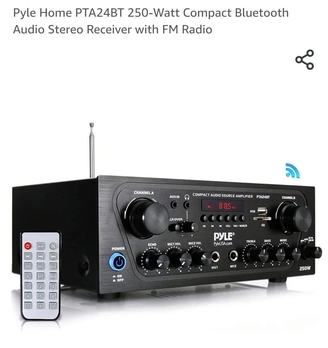 250-watt Pyle compact audio system with Bluetooth connectivity and built-in FM radio, new.