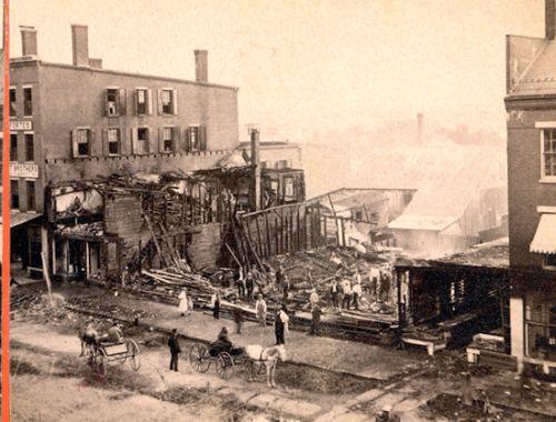 Title written in pen on the large label by H. A. Kimball, Concord, New Hampshire. The label continues, in pencil [possibly in same hand] to give details of this August 1, 1869 fire, and to list all the occupants. Did they perish? [3]