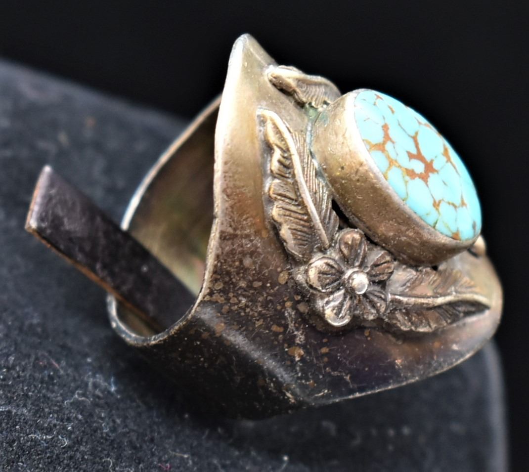 Vintage Stering Turquoise Ring by Carol Felley, Size 8.5, 1 1/8''L, hallmarked, total gram wt. of 10.4