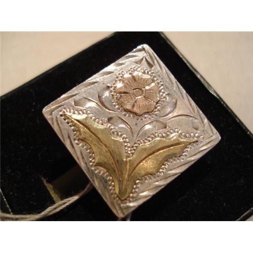 <tr><td>Title:Sterling &18K Cuff Links Mexico Flower</td></tr>