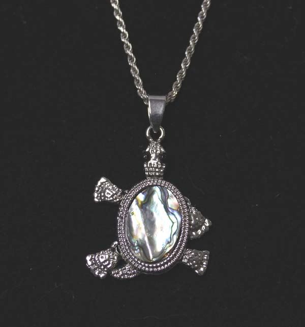 Sterling Abalone Shell Turtle Pendant Necklace, chain measures 16'' end to end and turtle pendant measures 1.5''L, 10.5g in total wt.