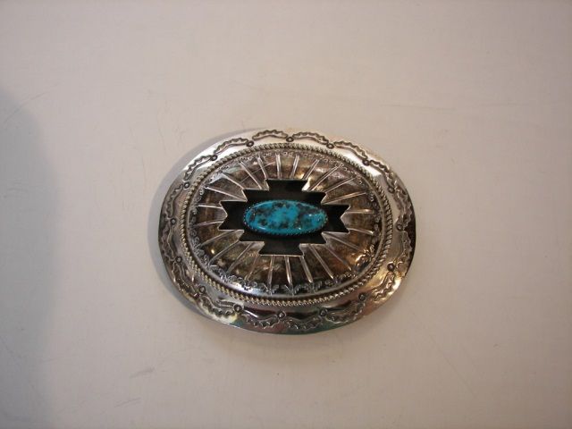 Sterling And Turquoise Belt Buckle, Signed W. M (7690) Sterling And Turquoise Belt Buckle, shadow Box Style, signed W. M., 3" X 2 1/2" ,