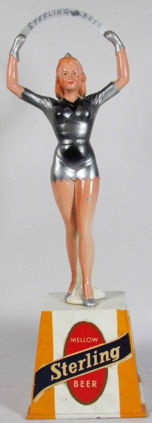 Sterling Beer Back Bar Display with Bell. Some very minor paint loss otherwise very good condition. 4 1/2 inch square base X 16 inches tall.