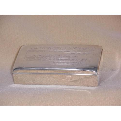 6 1/4'' by 3 1/4''by 1 1/2'' tall wood-lined, sterling silver box given as a 25th anniversary gift. Lid is hand engraved as a facsimile of a telegram. March 20, 1957. Signed ''Sterling By Poole'' on underside. Condition is good. Minor dings.