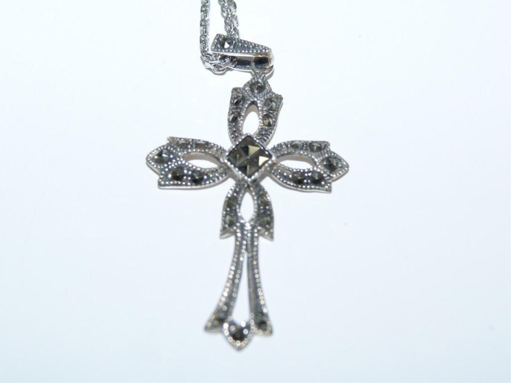 Sterling Bracelet w/ Ornate Sterling & Marcasite Cross