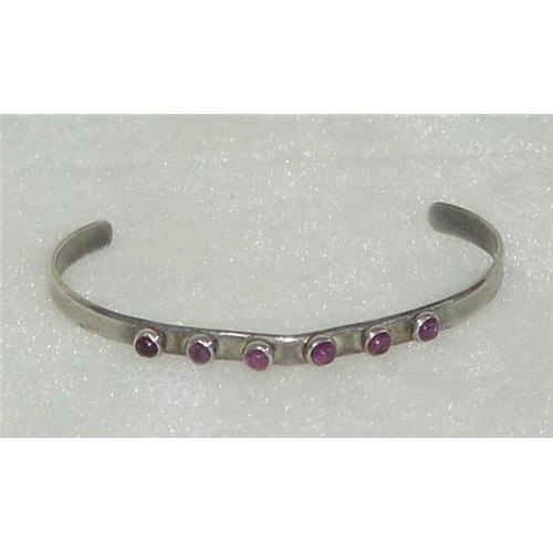 Sterling silver braclet set with six Amethyst colored cabachon stones. Marked sterling, Mexico.