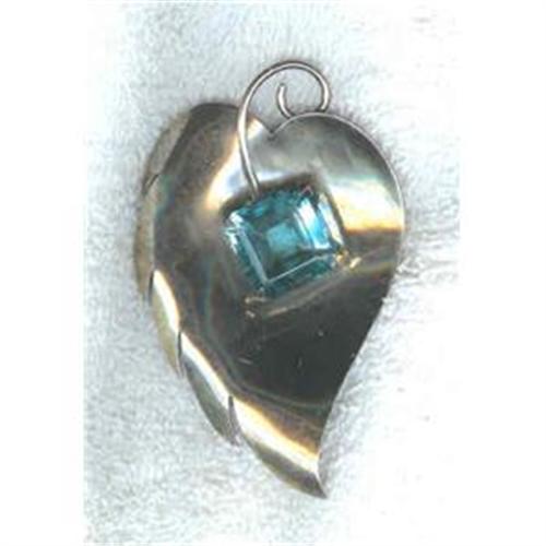 Large Sterling Pin 4" X 2.1/2". Marked "Sterling" with a large 7/8" X 7/8" Emerald Cut Blue Topaz coloured stone.