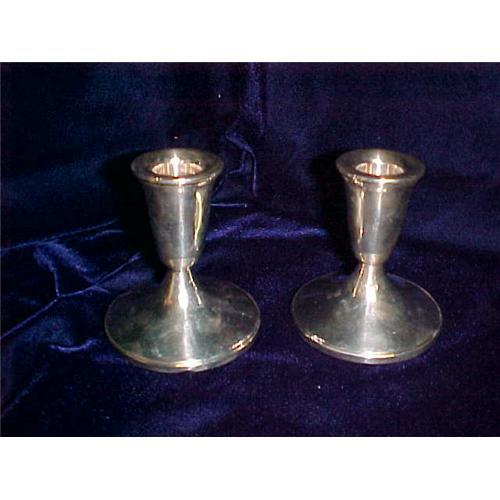 Sterling Candlesticks, Pair, Pre WWI - "Weighted silver". Very serviceable. Shallow candle basins.