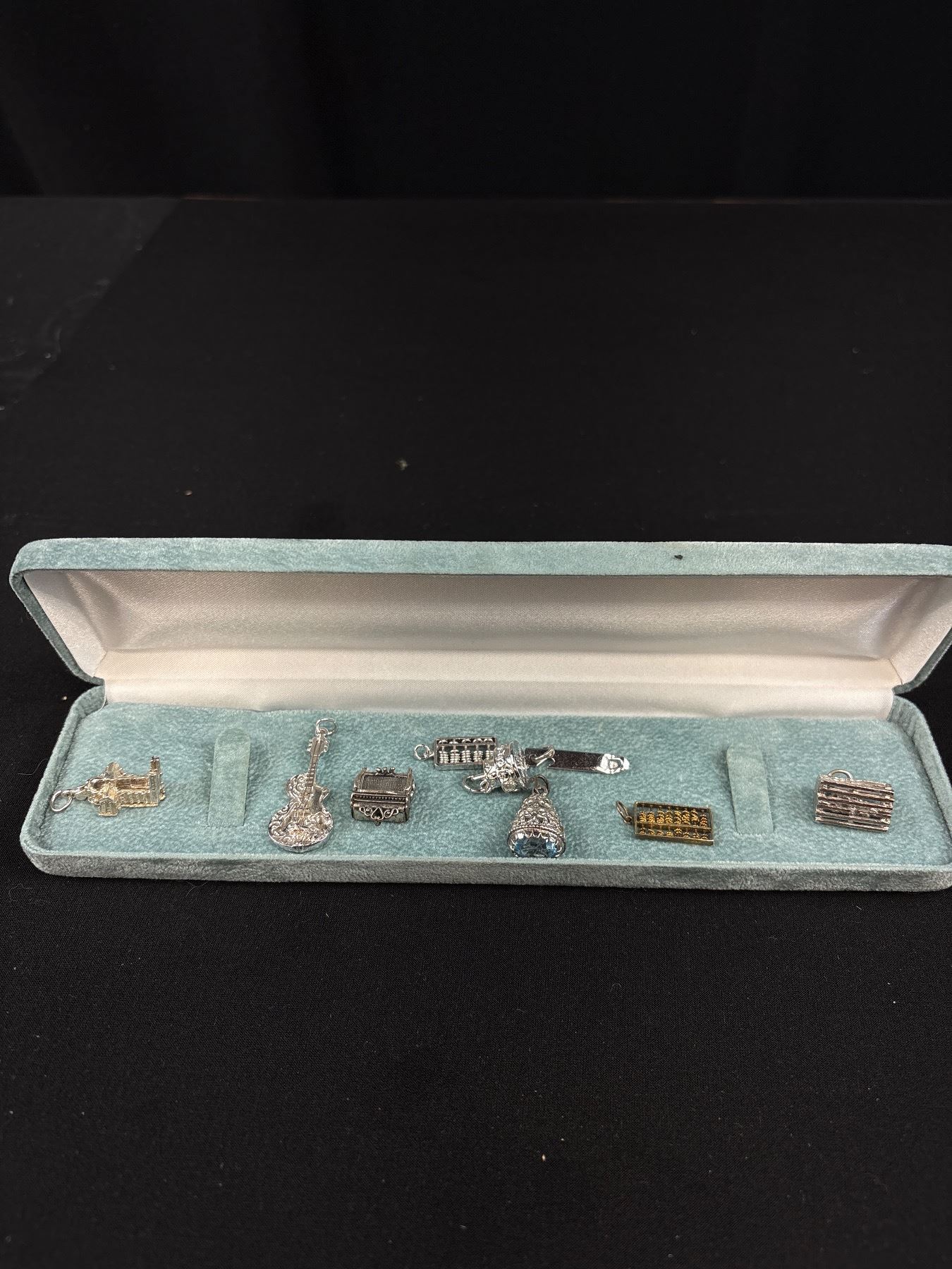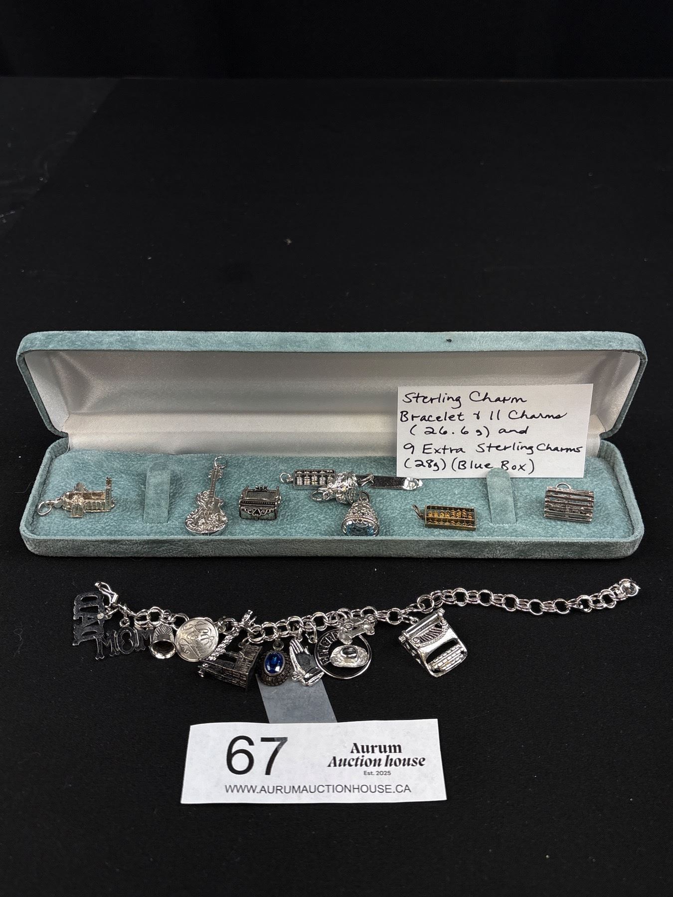 Sterling Charm Bracelet w/ 11 Charms (26.6 gr) + 9 Extra Sterling Charms (Blue Box)