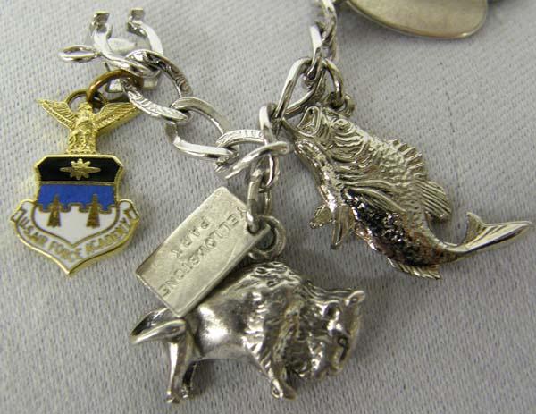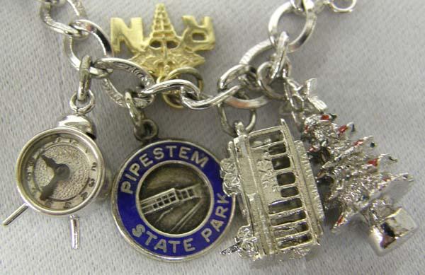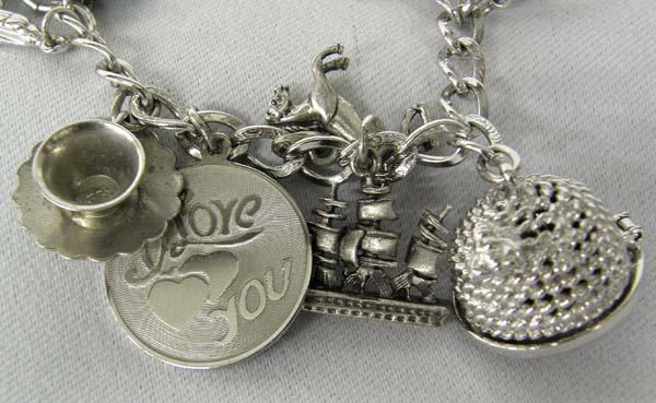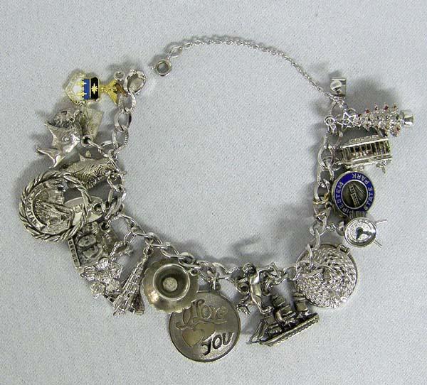 Sterling Charm Bracelet with 18 Charms. Measures approx. 6.5'' end to end. Buyers Pay Actual Shipping and Handling Charges(see terms and conditions for more information).