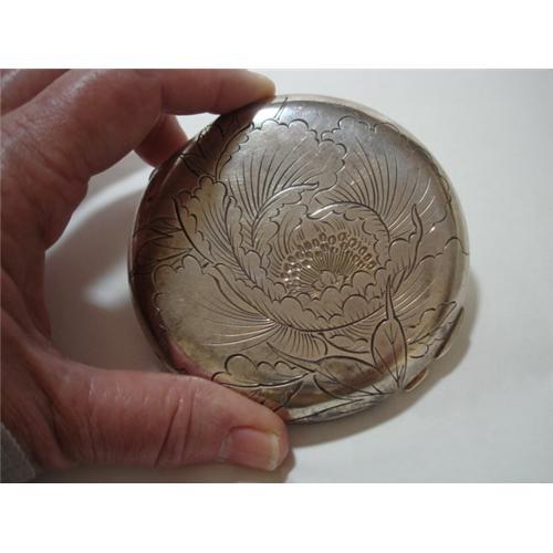 A Beautiful Sterling Presentation Compact, Decorated with Chrysanthemum, Orchid & Butterfly. Meiji Period.